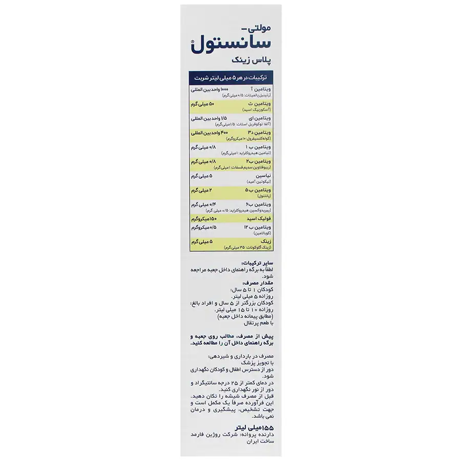 شربت مولتیویتامین پلاس زینک ۱۵۵ میلیلیتر سانستول